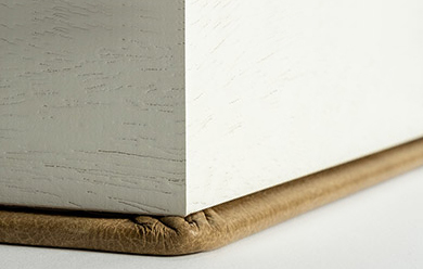 Buckram coating is made of stiff cotton, giving it a strong and durable texture. Being known for the durability of its fibres, Buckram is an authentic classic that lasts from generation to generation. It allows the choice of a wide range of colours, from its natural tones to the most vibrant ones.