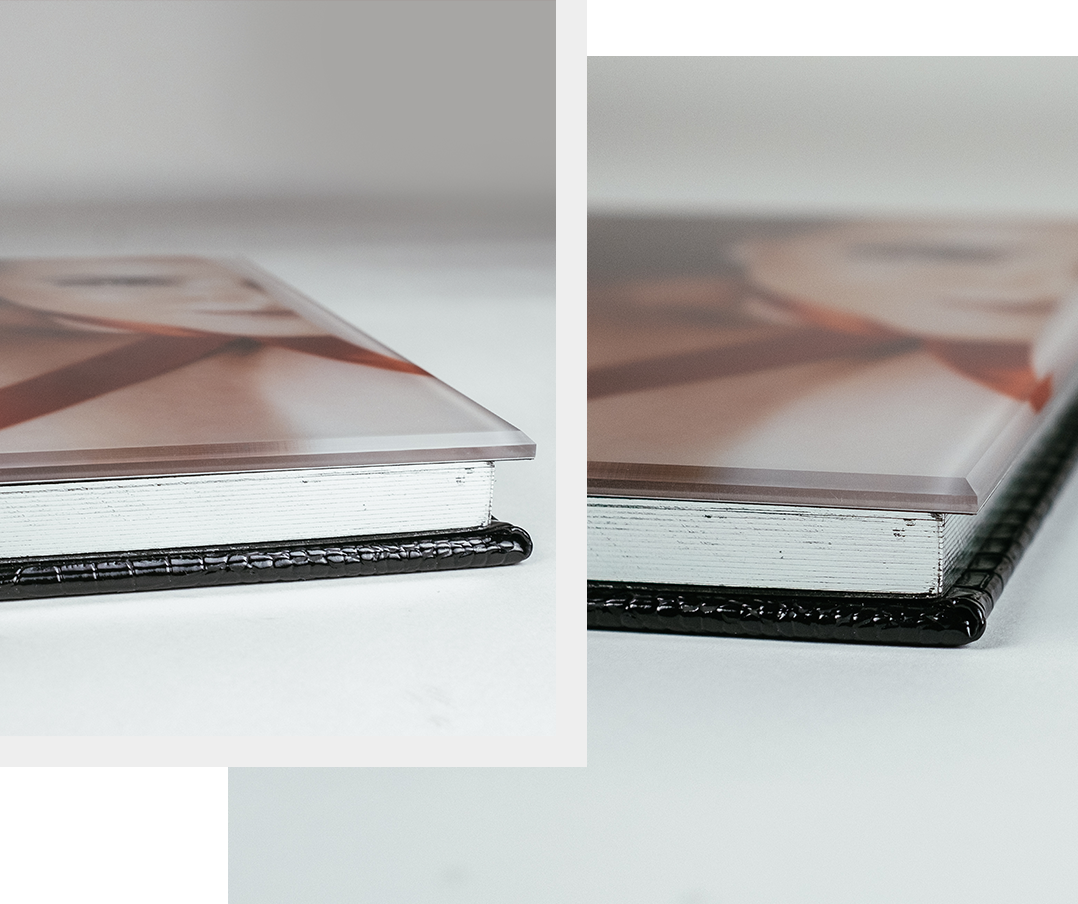 The customization Acrylic Edge allows you to add a rounded finish to the acrylic. The curvature in the acrylic provides an almost three-dimensional view and gives the album a premium and bold finish.