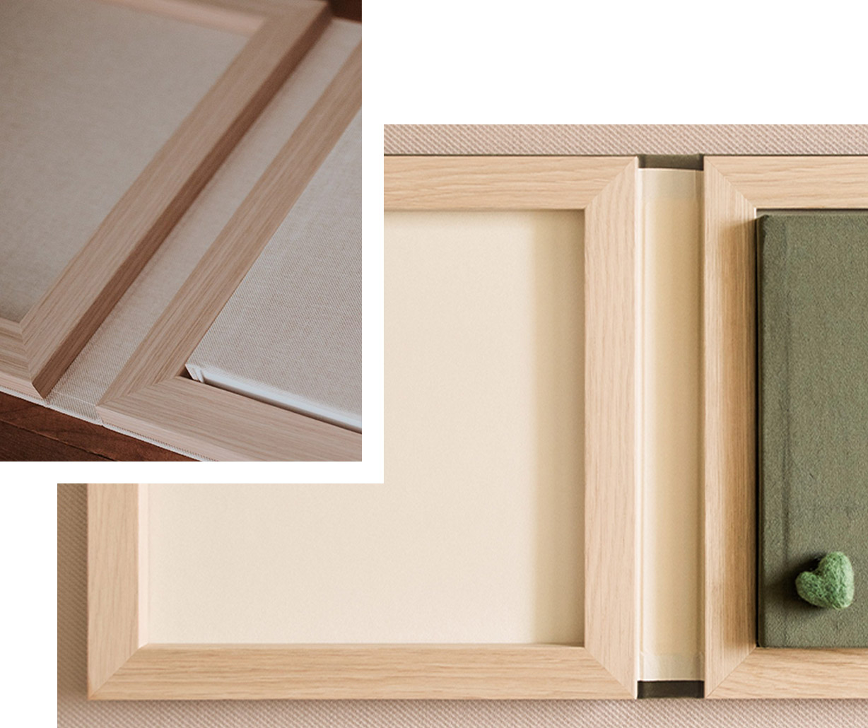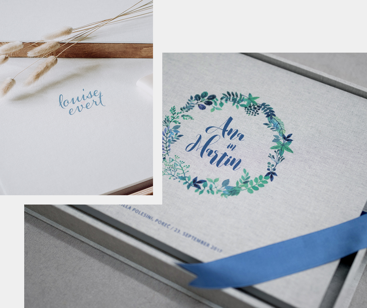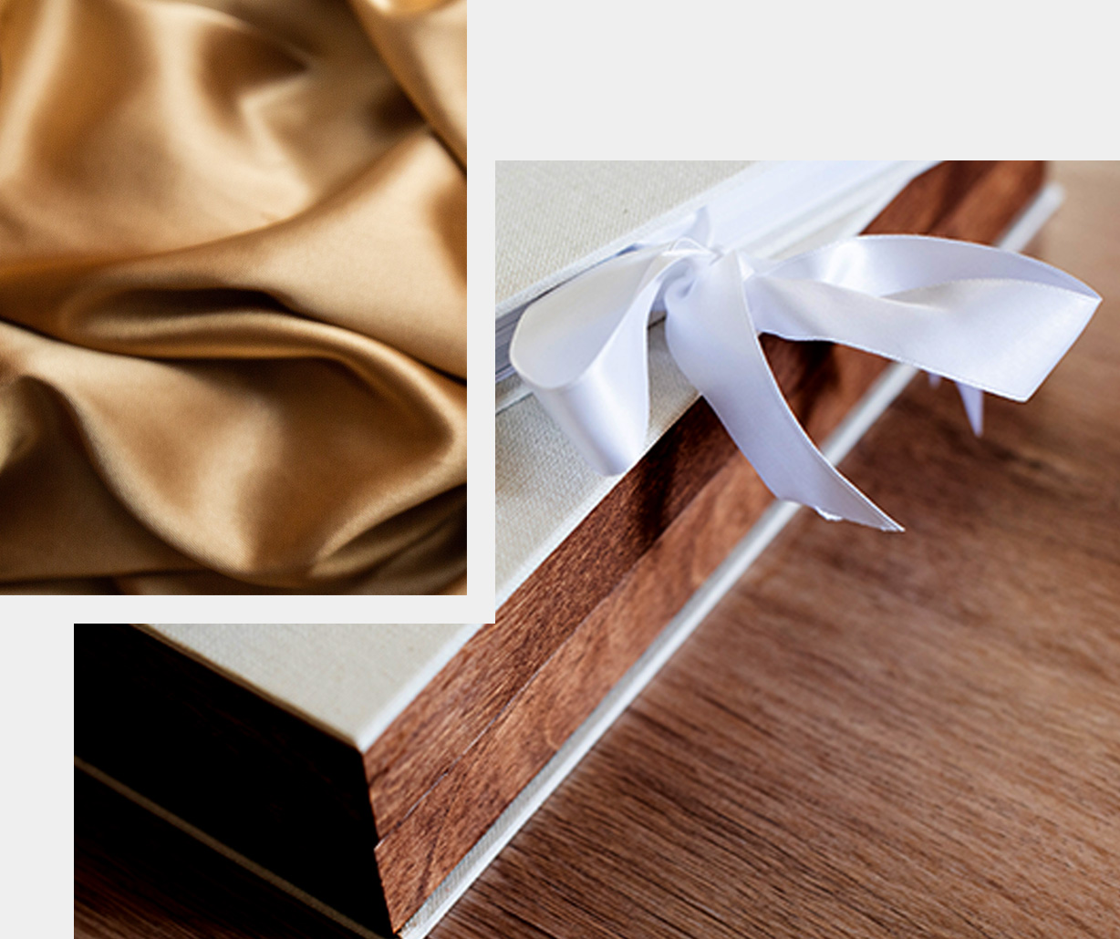 An option where is added a satin ribbon to the front and back cover that allows you to make a loop to close the album. An elegant detail that will give it a special touch.