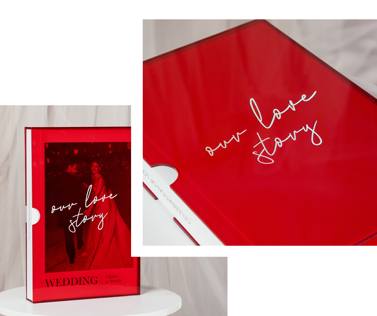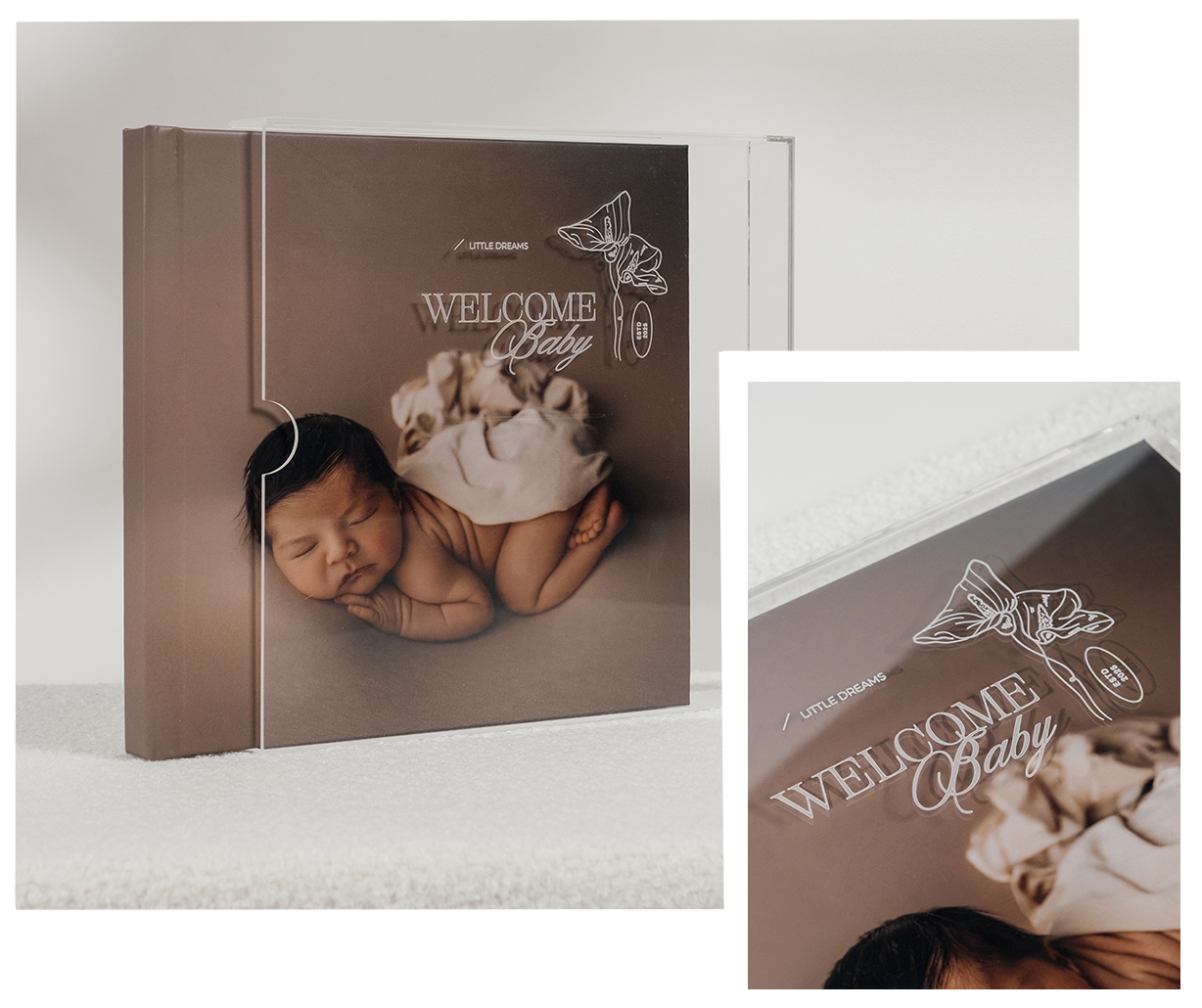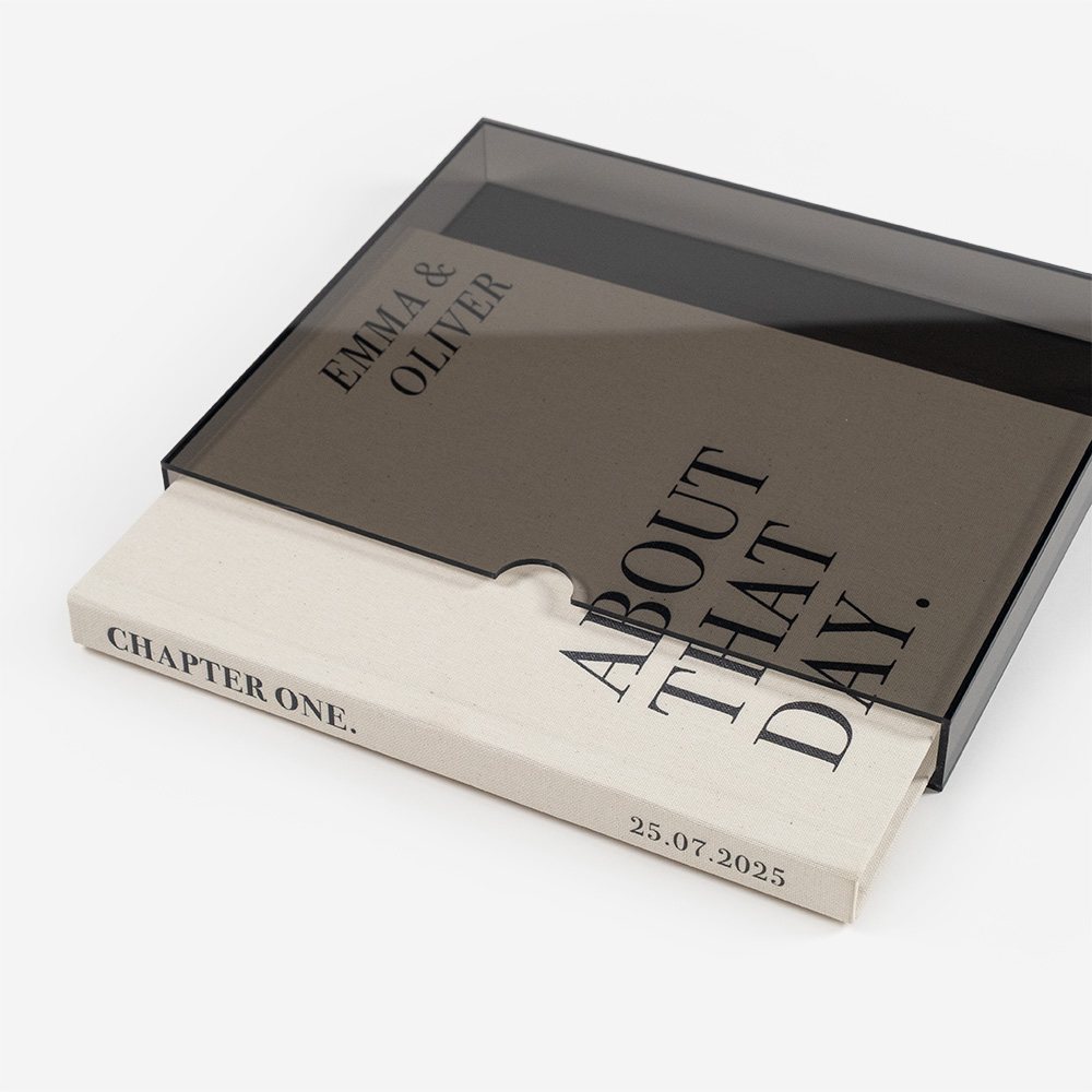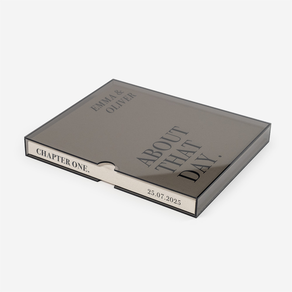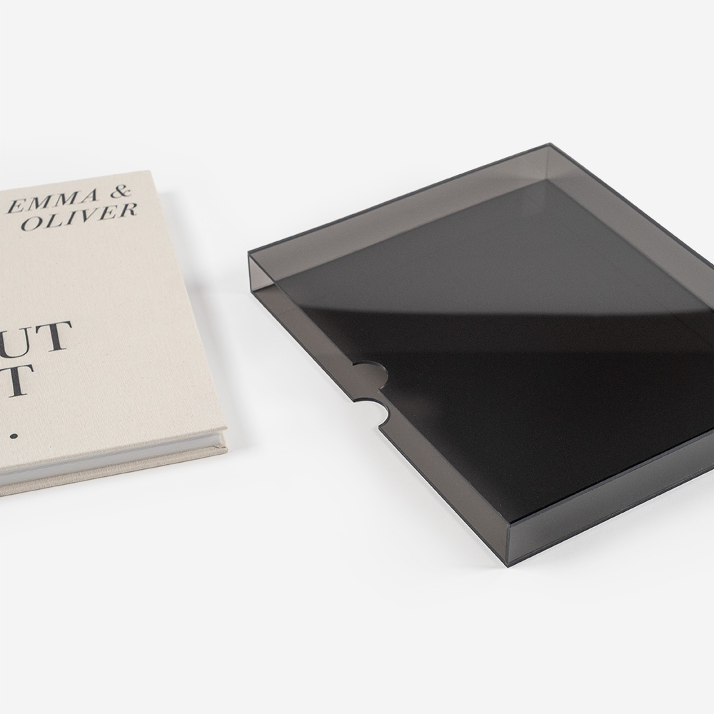 Acrylic is a strong, elegant, and versatile material that protects and enhances your products. Available in several options, it suits different styles: the clear version highlights purity and transparency, and the coloured one adds a sophisticated touch, that turns each album into a unique piece.