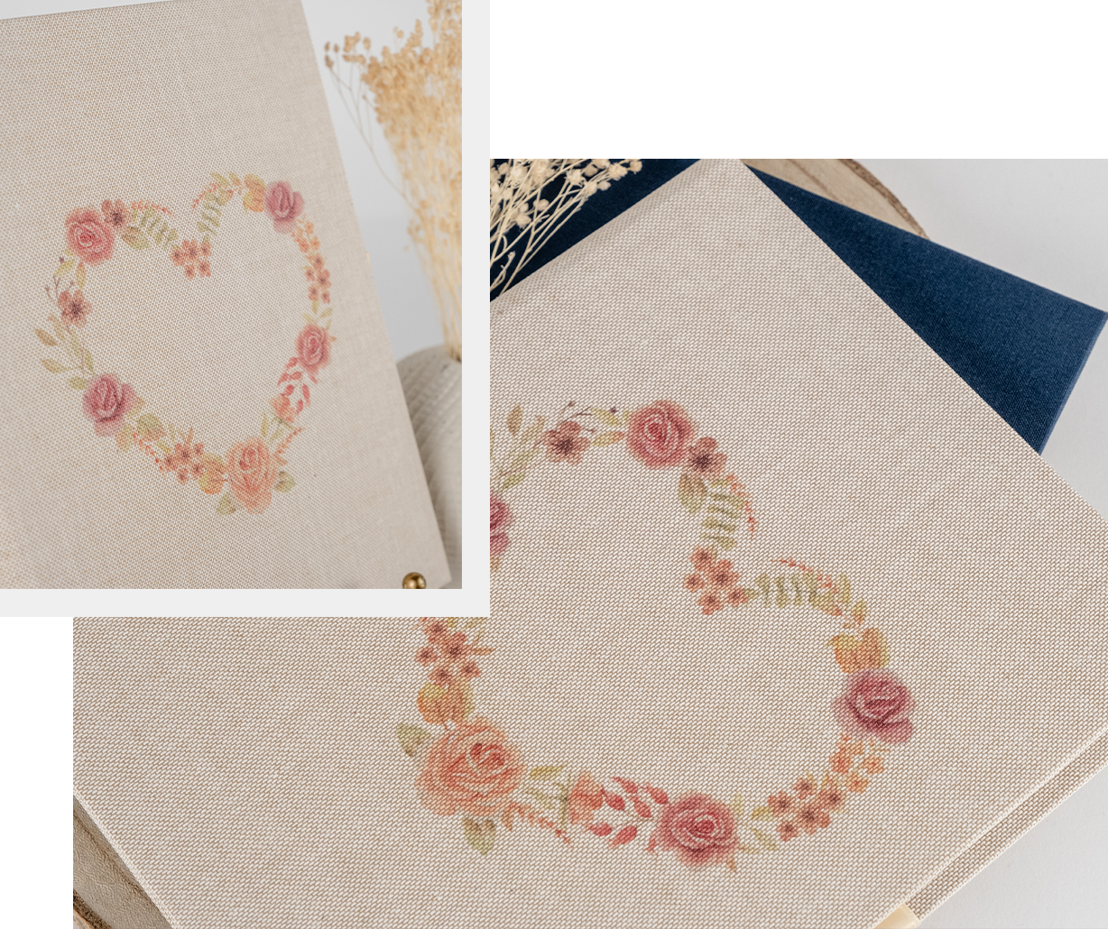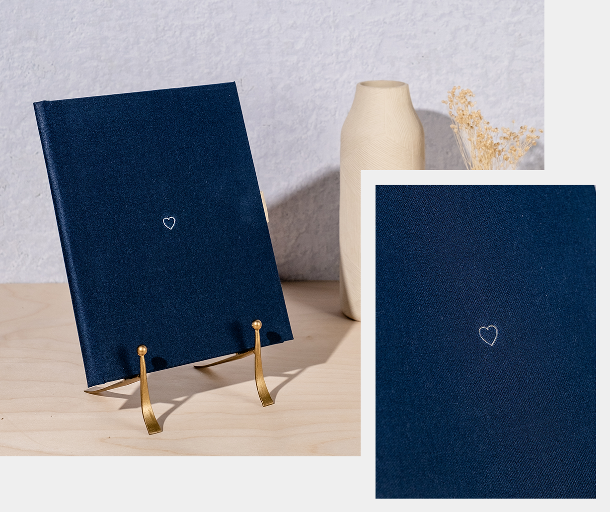 A refined finishing technique that uses a heated stamp to imprint details onto the cover, creating an elegant and sophisticated effect. You can choose between colorless stamping or a variety of available colors to enhance the design. Additionally, customization options include different fonts and the choice of uppercase and/or lowercase text, allowing for a truly unique and exclusive touch.